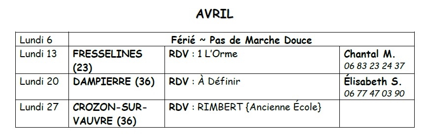 Modification du lieu de Marche Douce du 27 Avril